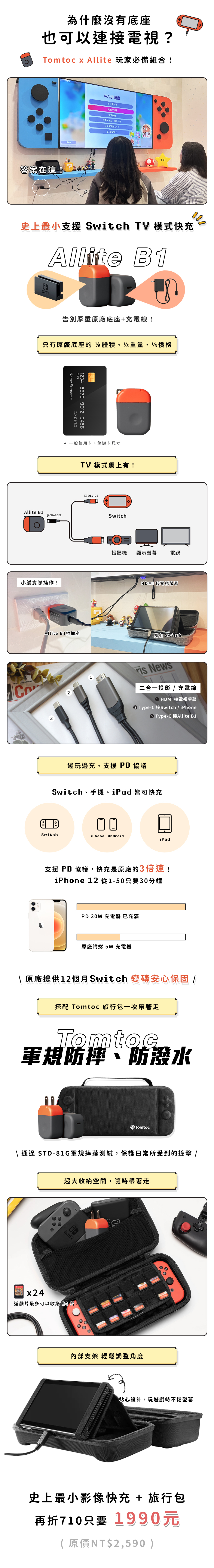 ★產品組合:tomtoc 玩家首選旅行包*1 + Allite B1*1