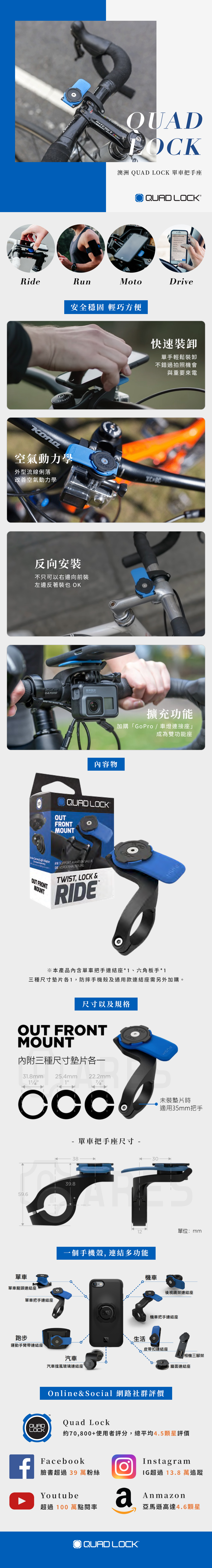 澳洲 QUAD LOCK 單車把手座 OUT FRONT MOUNT