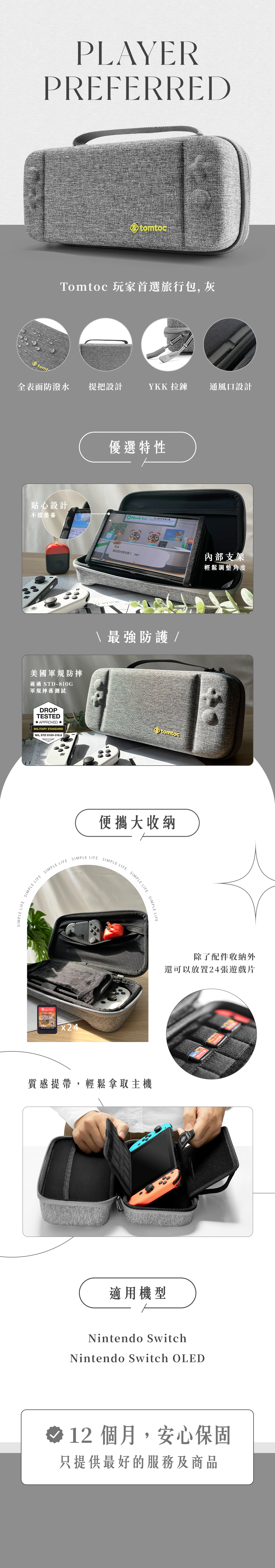 Tomtoc 玩家首選旅行包,灰(OLED 適用)