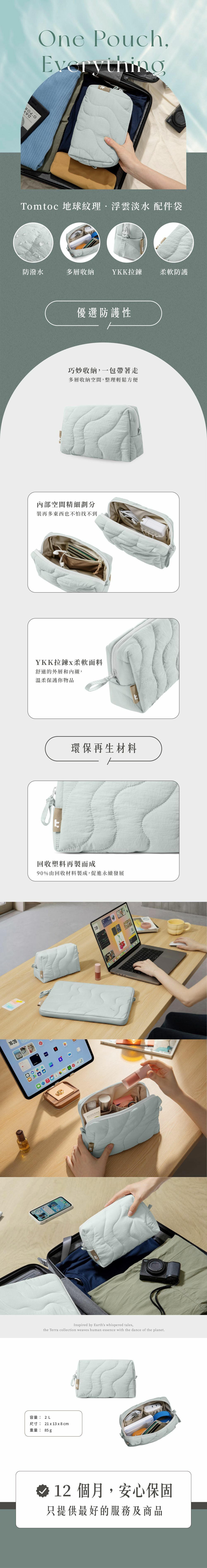 tomtoc 地球紋理 配件袋 浮雲淡水