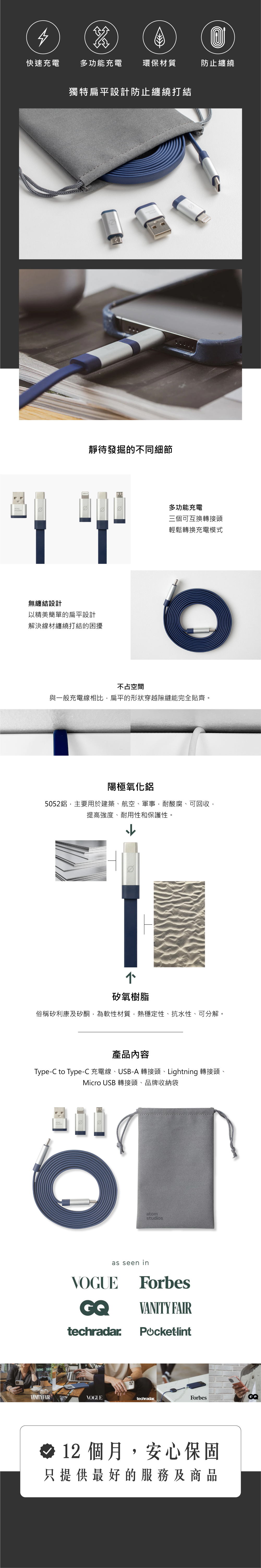 Atom Studios|1.8 M 多功能快速充電線 USB-C to USB-C (附品牌收納袋)