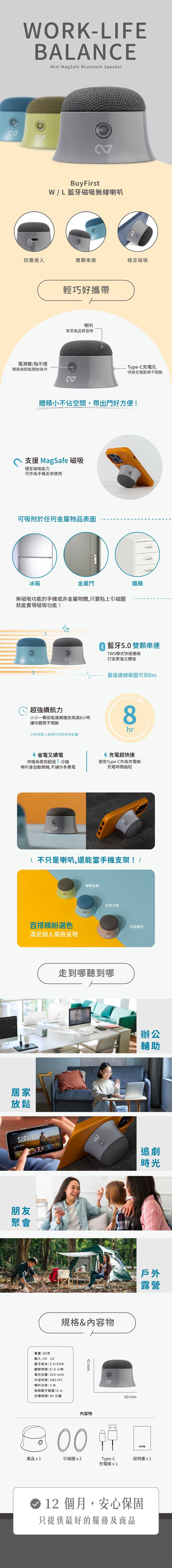 BuyFirst W/L 磁吸藍牙喇叭 灰星銀河