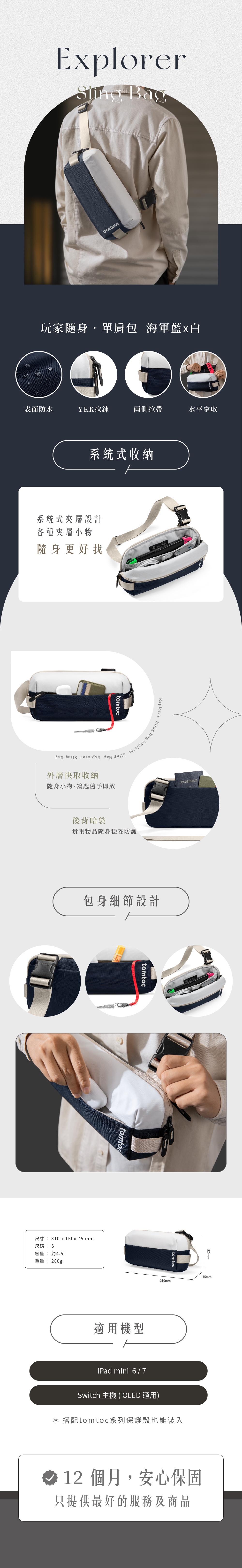 Tomtoc 玩家隨身 單肩包 海軍藍x白 - S