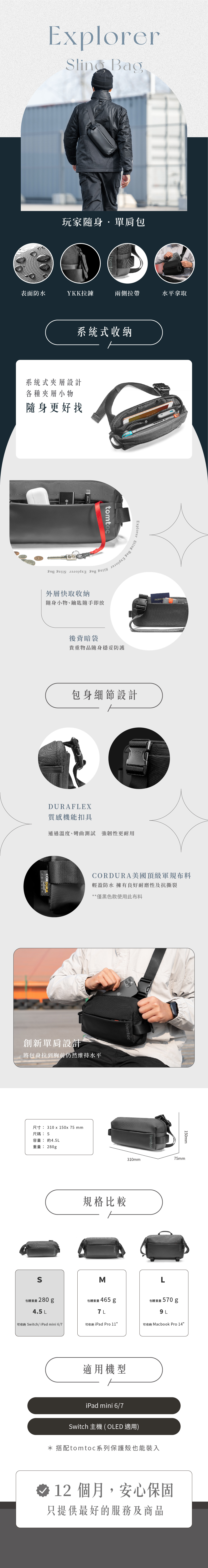 Tomtoc 玩家隨身 單肩包 黑 - S