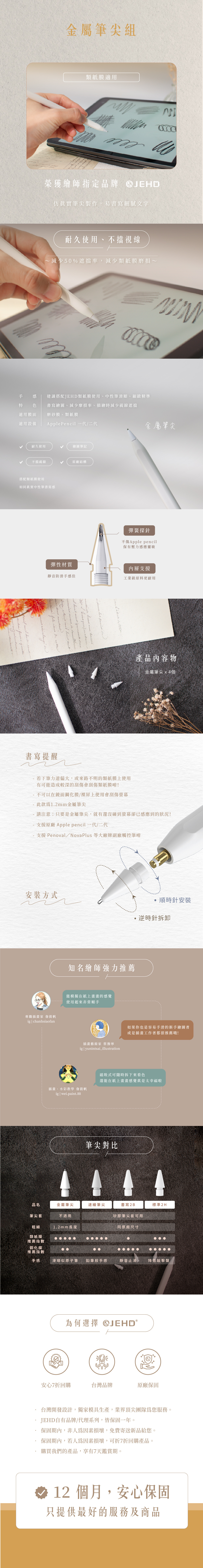 \ 金屬筆尖建議搭配JEHD系列類紙膜使用,達到最佳手感/