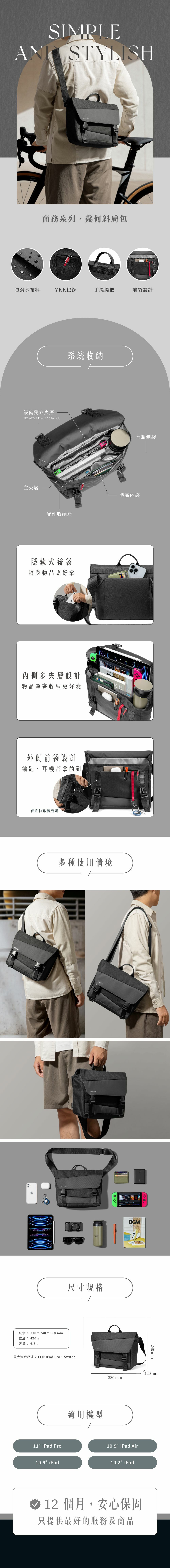 Tomtoc 商務系列 • 幾何斜肩包