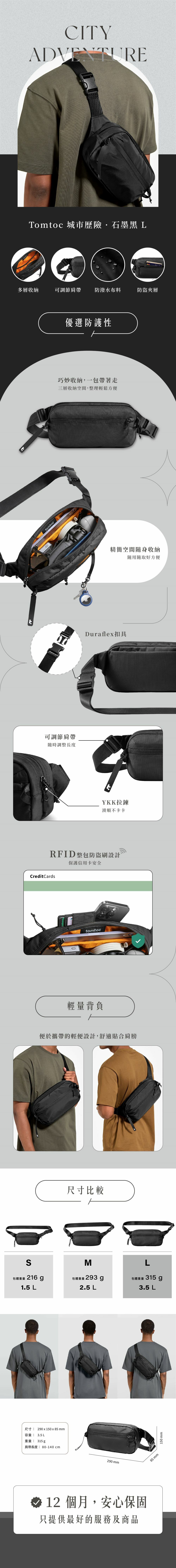 Tomtoc 城市歷險 斜肩包 石墨黑 - L