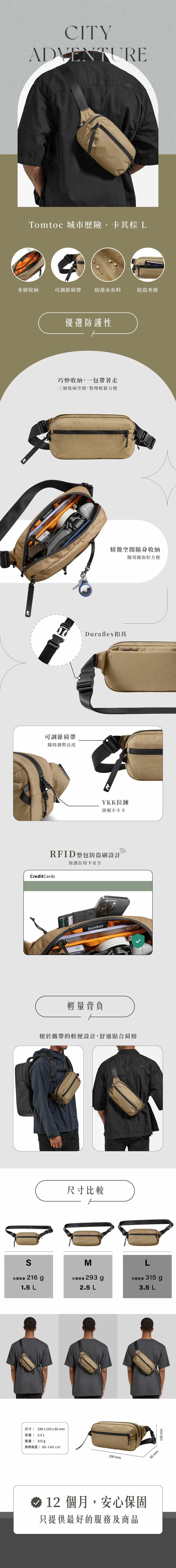 Tomtoc 城市歷險 斜肩包 卡其棕 - L