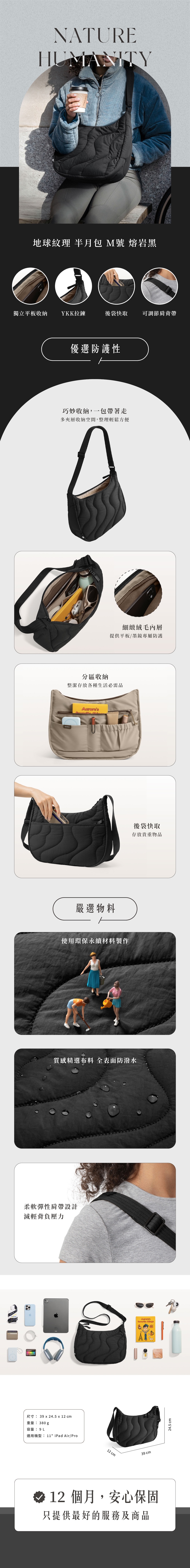 Tomtoc 地球紋理 半月包 M號 熔岩黑
