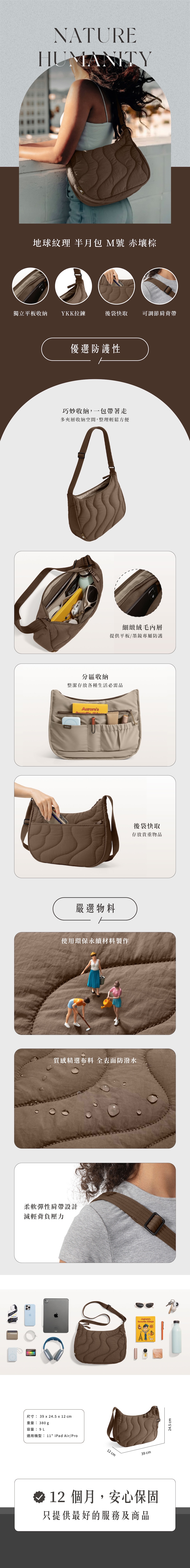 Tomtoc 地球紋理 半月包 M號 赤壤棕