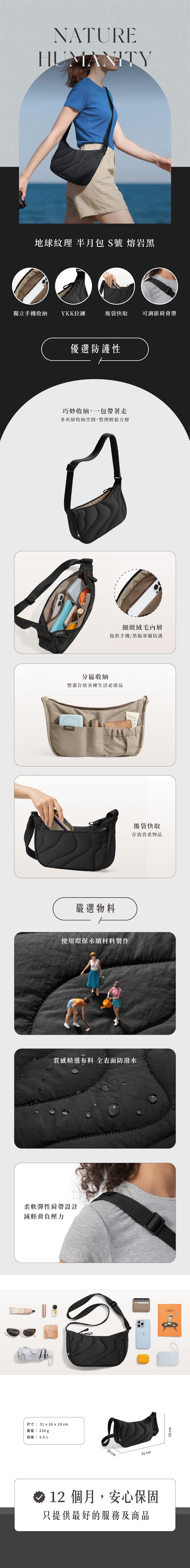 Tomtoc 地球紋理 半月包 S號 熔岩黑