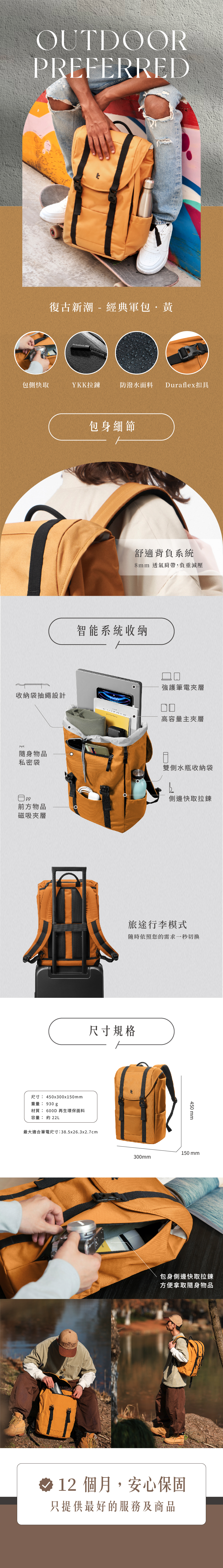 Tomtoc 復古新潮 經典軍包 黃